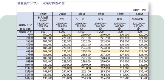 一般的には、号俸表や範囲職務給(ゾーン型賃金表)の形式で作成します。