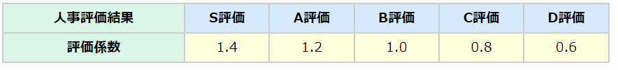 評価係数:人事評価結果に応じて定めた係数