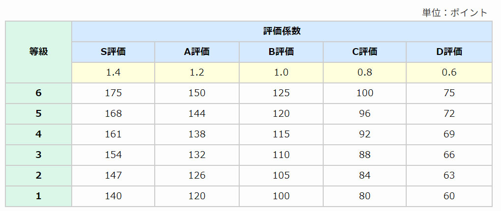 ■ポイント表(再掲)